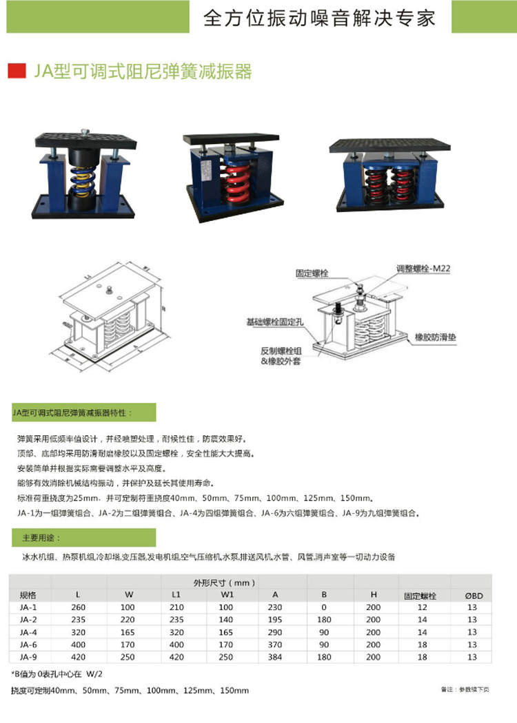 4、能夠有效隔離冷水機(jī)組、冷卻塔、熱泵機(jī)組、發(fā)電機(jī)組、等大型動力設(shè)備的振動,并保護(hù)及延長其使用壽命。