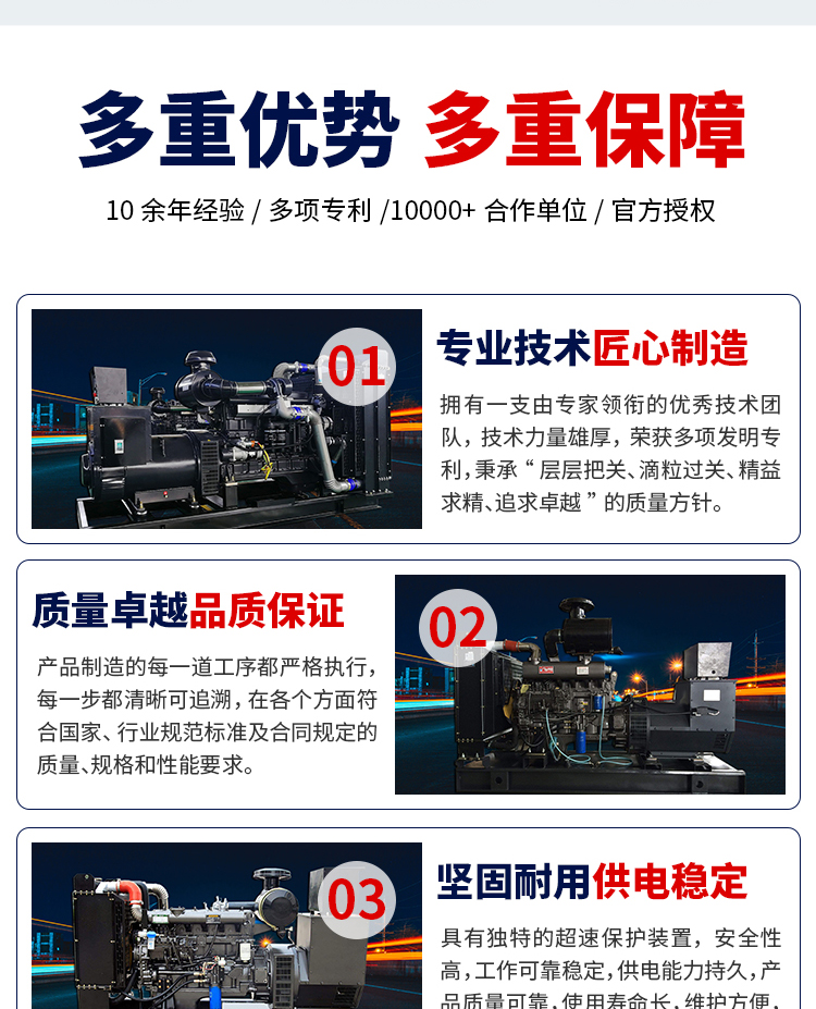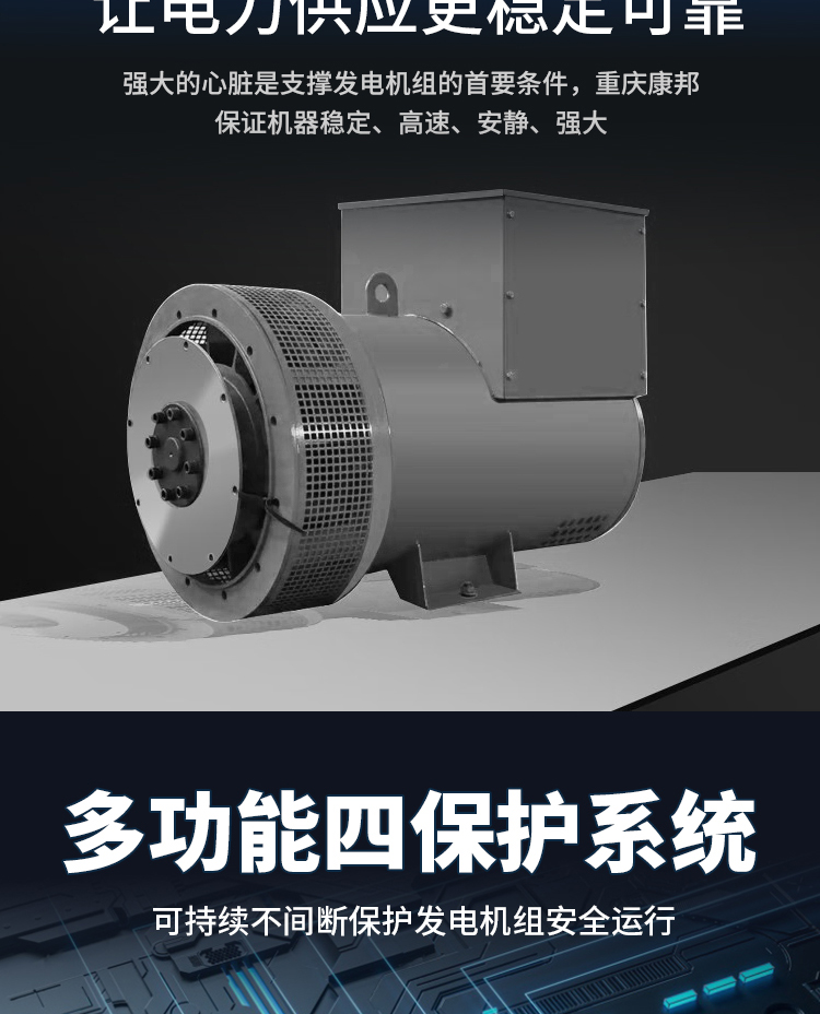 康邦可為不同行業(yè)提供30KW-3000KW不同規(guī)格、普通型、自動化、四保護(hù)、自動切換及三遙監(jiān)控、低噪音及移動式、自動化并網(wǎng)系統(tǒng)等特殊電力需求的柴油發(fā)電機(jī)組。
